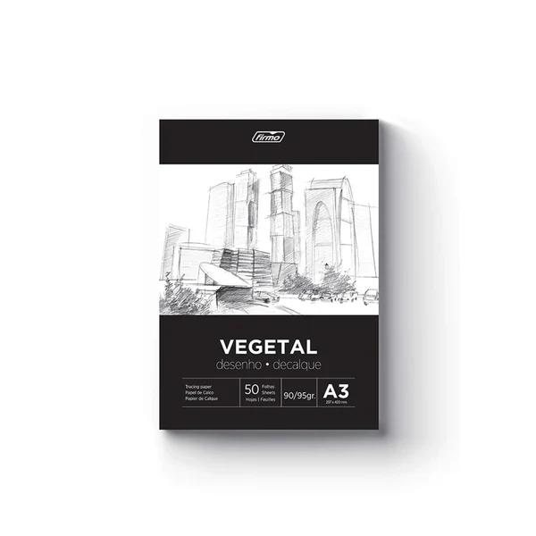Bloco de papel vegetal, formato A3, contém 50 folhas em papel de 90g.