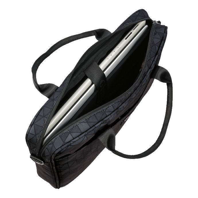 Compartimento para computador portátil. Bolsa na frente com fecho.