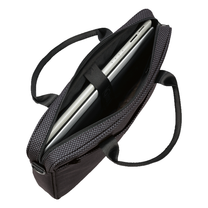 Compartimento para computador portátil. Bolsa na frente com fecho.